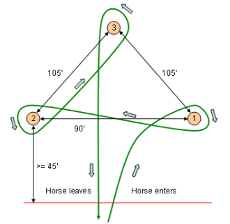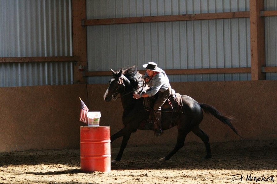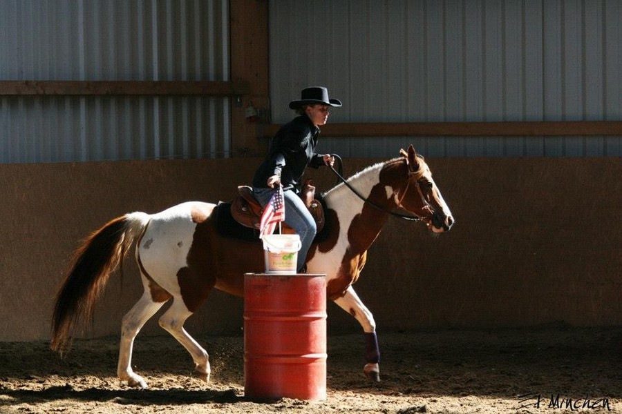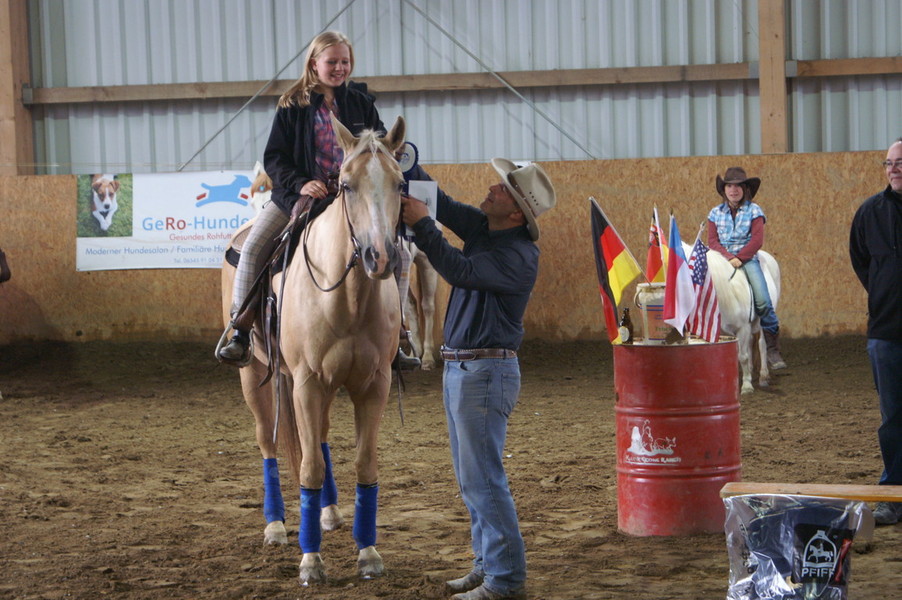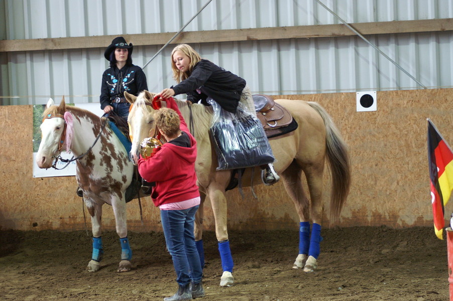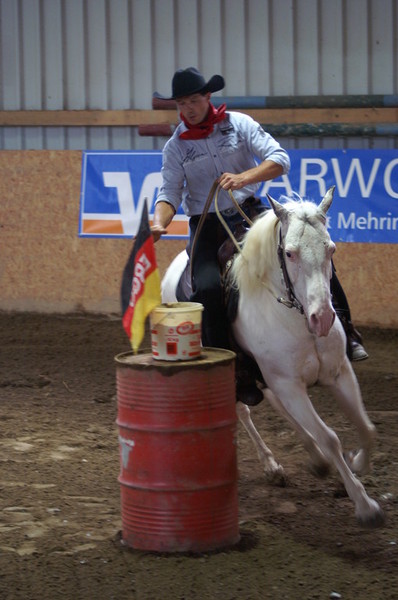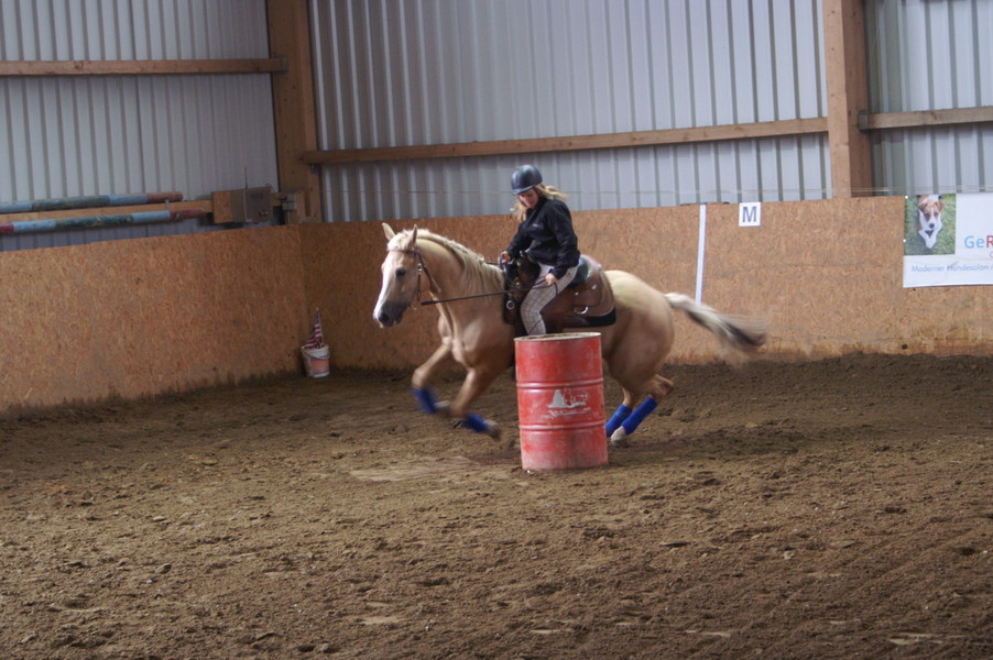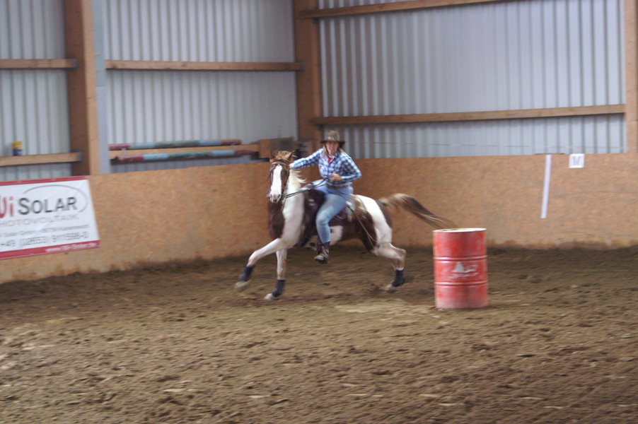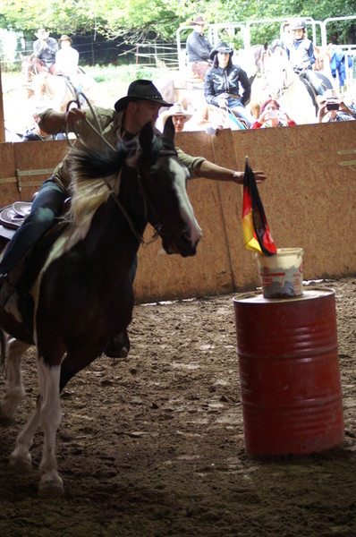 Vom Prinzip her eigentlich ganz einfach: Beim Flag Race werden 4 Tonnen auf dem Hufschlag umritten. An jeder Ecke steht eine Tonne. Du schnappst Dir aus Tonne 1 die Fahne und eilst damit zu Tonne 2: Im Sandeimer versenken! Flitzt weiter zu Tonne 3, greifst dir die Fahne und steckst sie in Tonne 4. Das Ganze möglichst zackig!!!